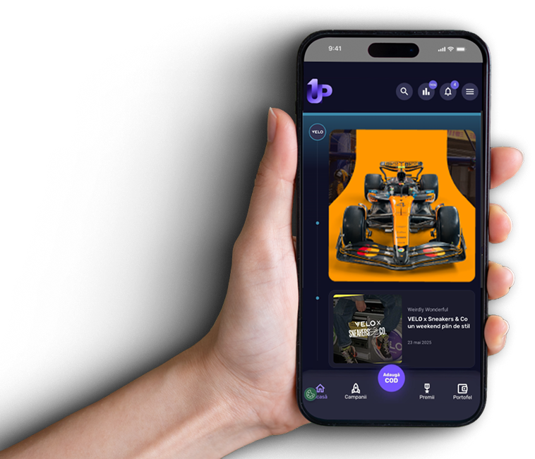Intră pe OneUp, înscrie-te în campanie și poți câștiga o experiență exclusivă VELO x McLaren F1 Team, direct pe circuit.